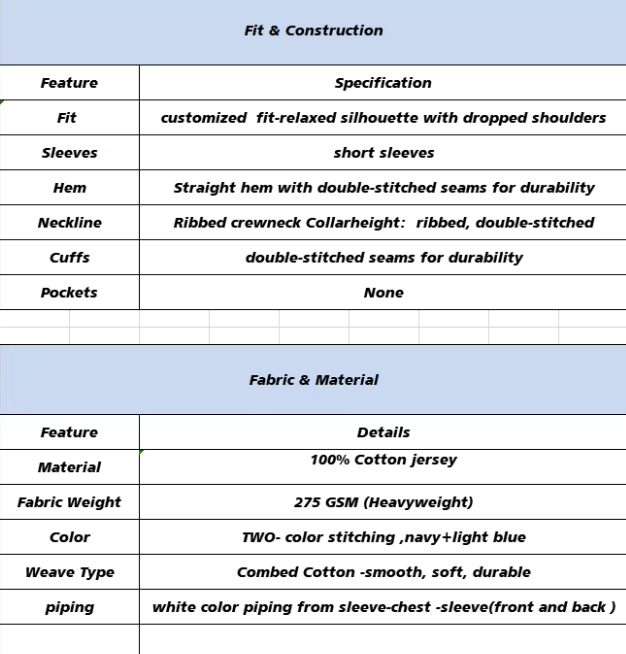 White piping running sleeve-to-chest-to-sleeve (front and back)
